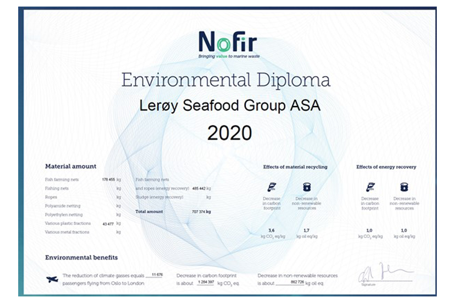 The reported emission figures have been collected throughout 2020 from relevant suppliers via invoices and direct monitoring, and are based on the same data source as the figures reported in Lerøy’s 2019 annual report.