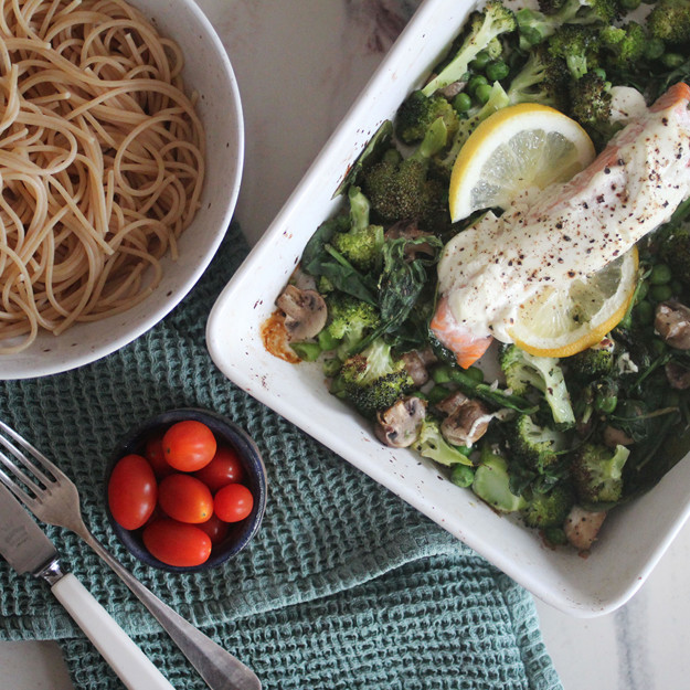 Ovnsbakt laks med brokkoli og crème fraîche er en superpopulær oppskrift – enkel er den også!
