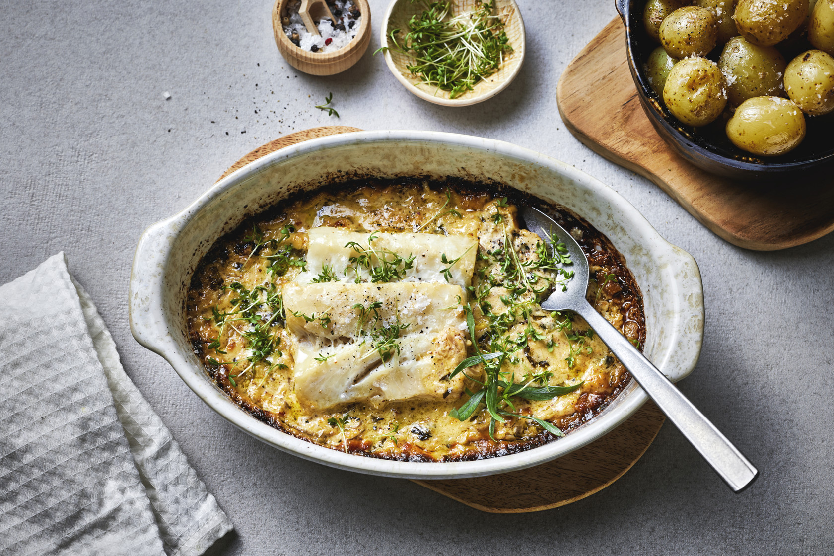 Laksegrateng med squash og potet