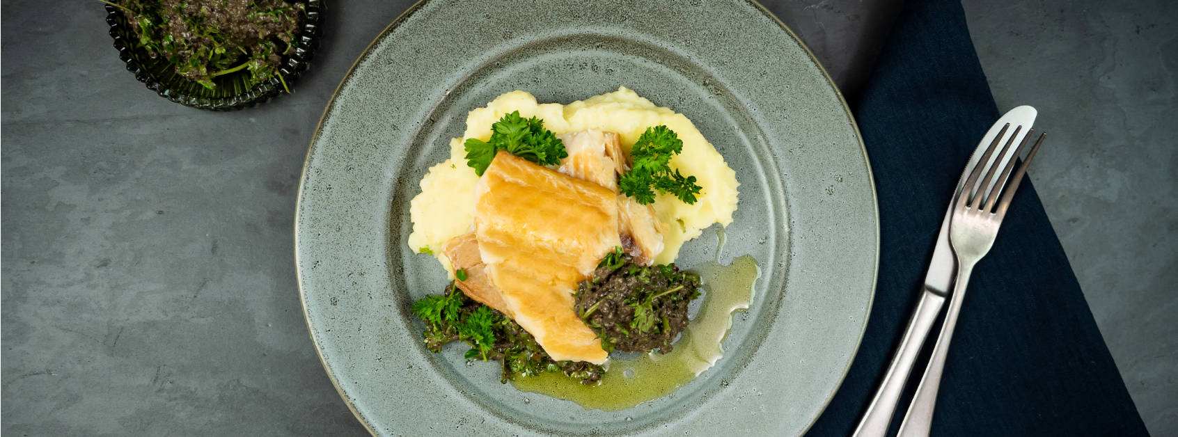 Røkt torsk med oliventapenade og potetpuré